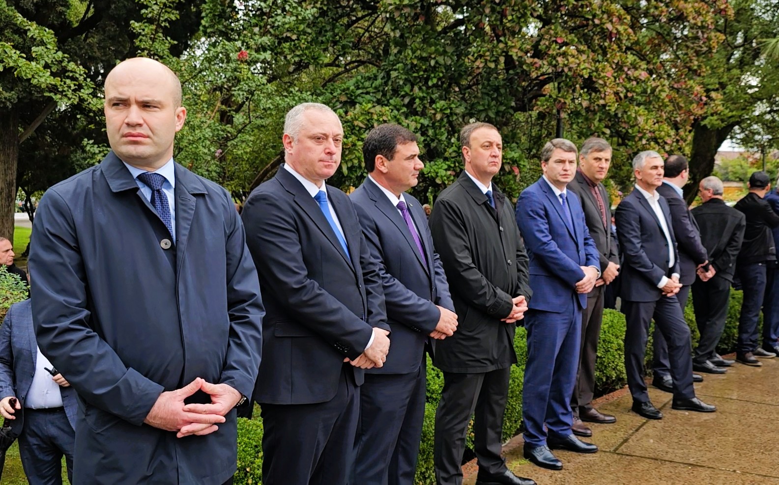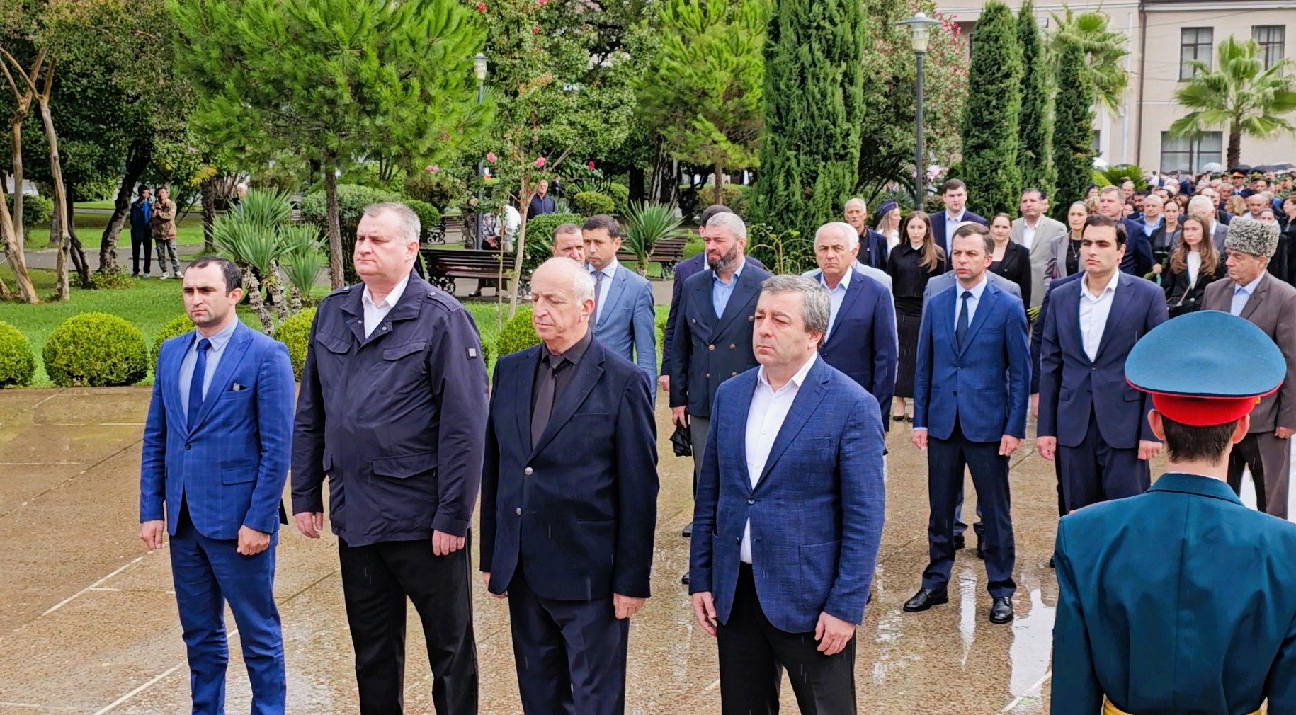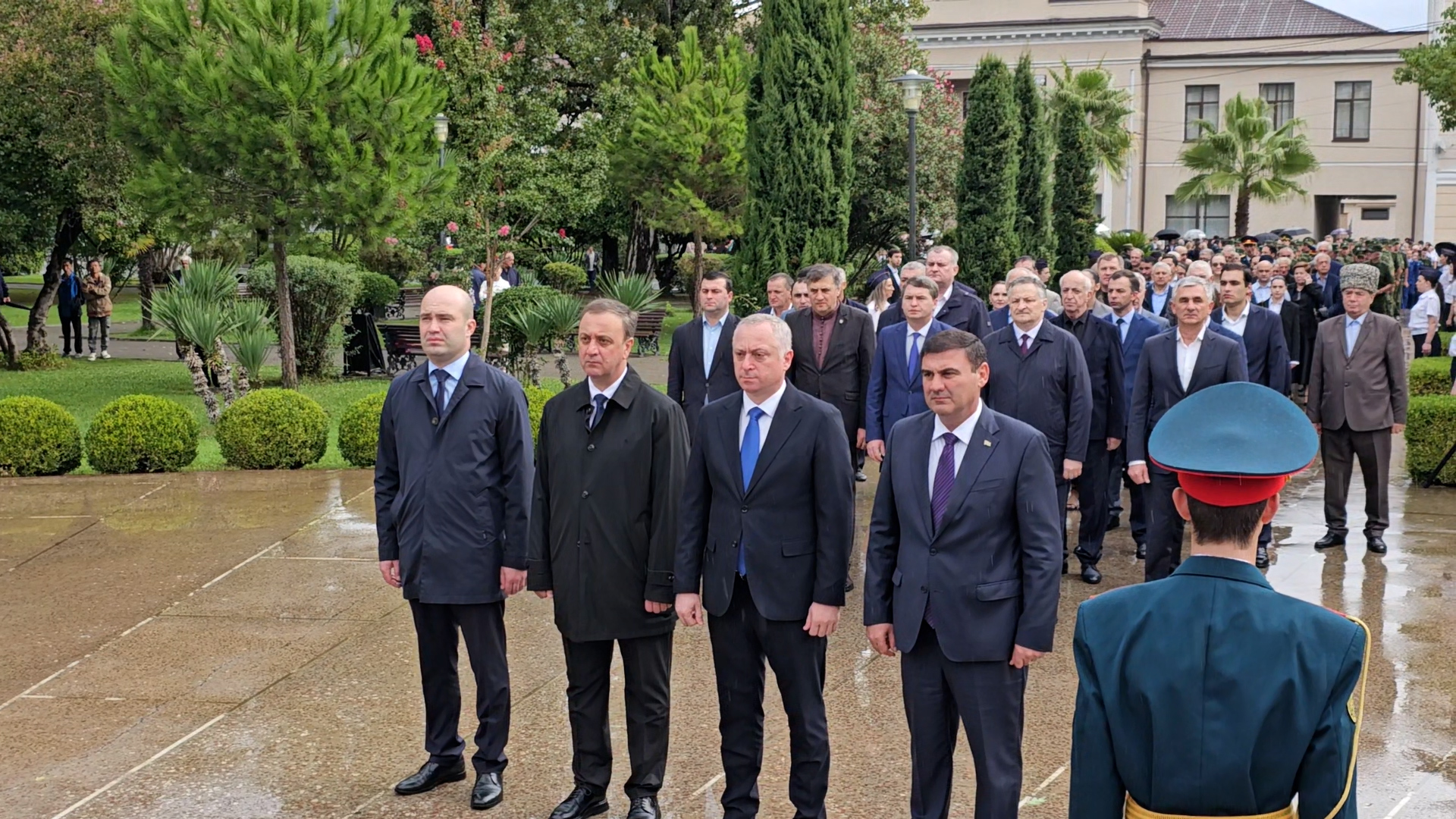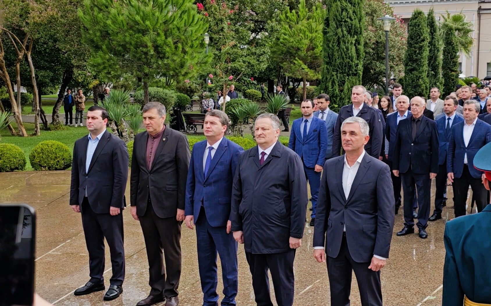 В парк Славы пришли президент Бадра Гунба, вице-президент Беслан Бигвава, премьер-министр Владимир Делба, спикер Парламента Лаша Ашуба, глава Администрации президента Беслан Эшба, секретарь Совета безопасности Рауль Лолуа, члены Правительства, ветераны войны, добровольцы, матери погибших воинов, представители общественности.