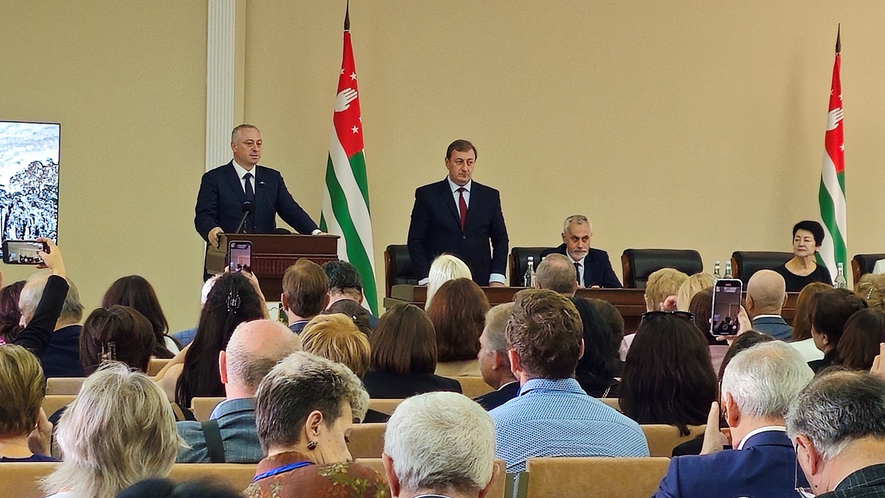 «80 лет назад, в год Великой Победы, родился человек, чьё имя золотыми буквами вписано в историю Абхазии, – первый президент Республики Абхазия, выдающийся учёный, национальный лидер Владислав Григорьевич Ардзинба. Символично, что, родившись в год Победы над фашизмом, он стал символом Победы Абхазии в её Отечественной войне. Третья юбилейная дата – 100-летие Абхазского института гуманитарных исследований им. Д. И. Гулиа Академии наук Абхазии. Это старейшее научное учреждение страны, сыгравшее важную роль в сохранении и развитии национальной культуры, языка и истории. Особое внимание мы уделяем участию в форуме наших российских коллег и учёных. Мы особенно ценим присутствие представителей Института востоковедения Российской Академии Наук, где Владислав Григорьевич Ардзинба работал многие годы, где сложился его авторитет как выдающегося исследователя истории и культуры Востока и Кавказа. Мы рассматриваем сотрудничество научных учреждений Абхазии и России как стратегически важное направление. Оно не ограничивается академическими исследованиями, но имеет огромное значение для сохранения исторической памяти, для формирования общих подходов и изучения кавказской проблематики, для передачи будущим поколениям ценностей, без которых невозможно полноценное существование ни одного народа», – сказал президент.