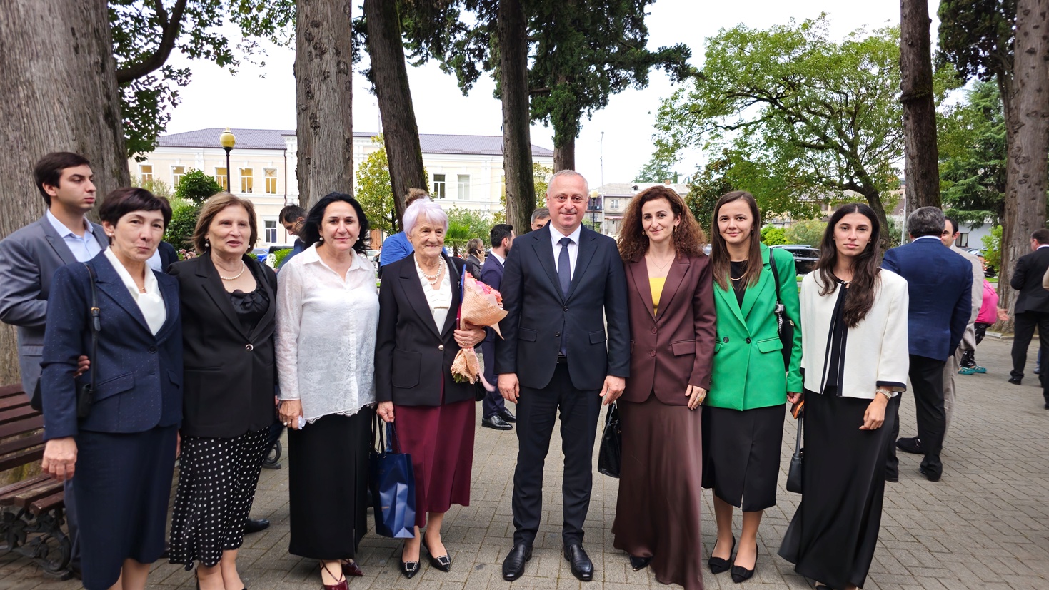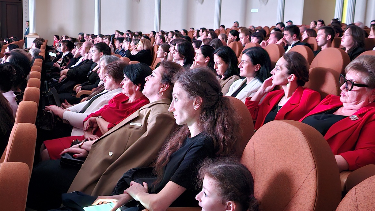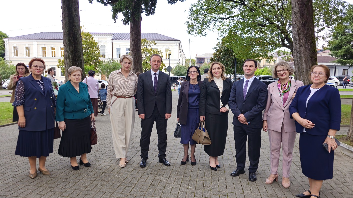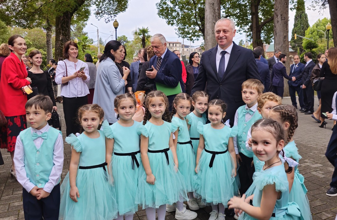 В своём выступлении президент Бадра Гунба поздравил педагогов с профессиональным праздником и вручил награды «Заслуженный учитель Республики Абхазия» преподавателям Карине Когония, Залите Таркил, Александру Арамяну и Амалии Капикян.