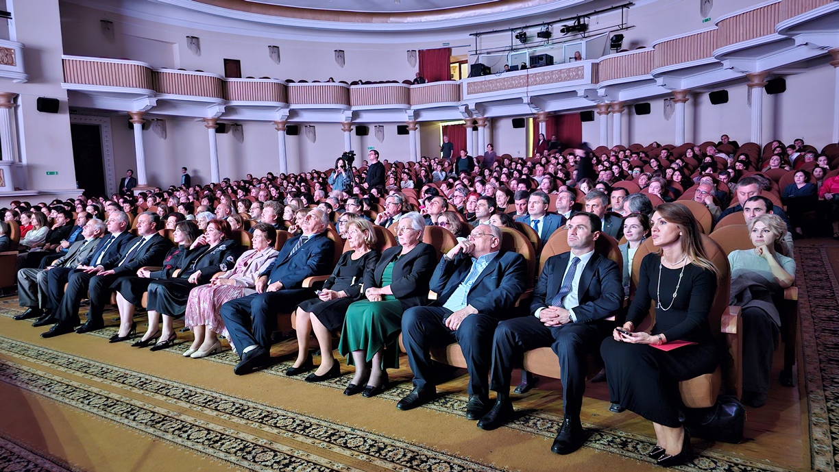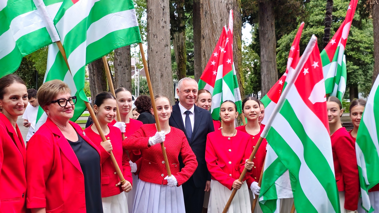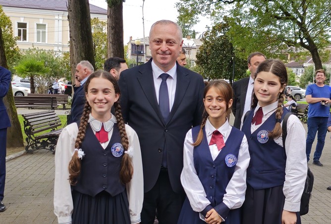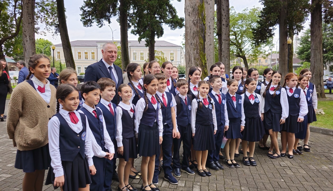 В своём выступлении президент Бадра Гунба поздравил педагогов с профессиональным праздником и вручил награды «Заслуженный учитель Республики Абхазия» преподавателям Карине Когония, Залите Таркил, Александру Арамяну и Амалии Капикян.