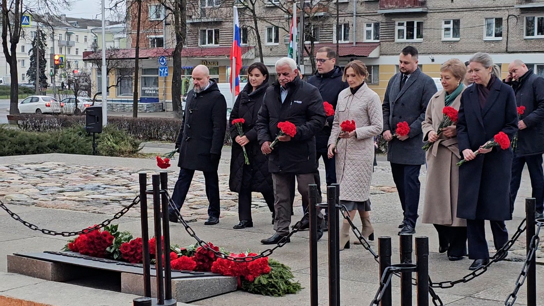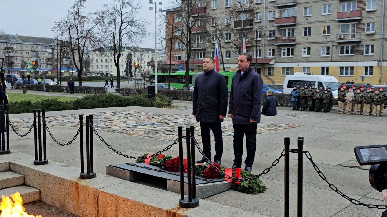 Сегодня, в рамках официальных мероприятий премьер-министр Владимир Делба, губернатор Псковской области Михаил Ведерников, члены делегации Правительства Абхазии приняли участие в церемонии возложения цветов к могиле Неизвестного солдата на площади Победы в Пскове.