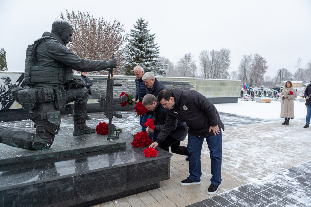 Официальные лица возложили цветы к подножию мемориального комплекса на погосте Выбуты Псковского округа, отдавая дань уважения воинам, которые проявили доблесть и мужество на полях сражений.
