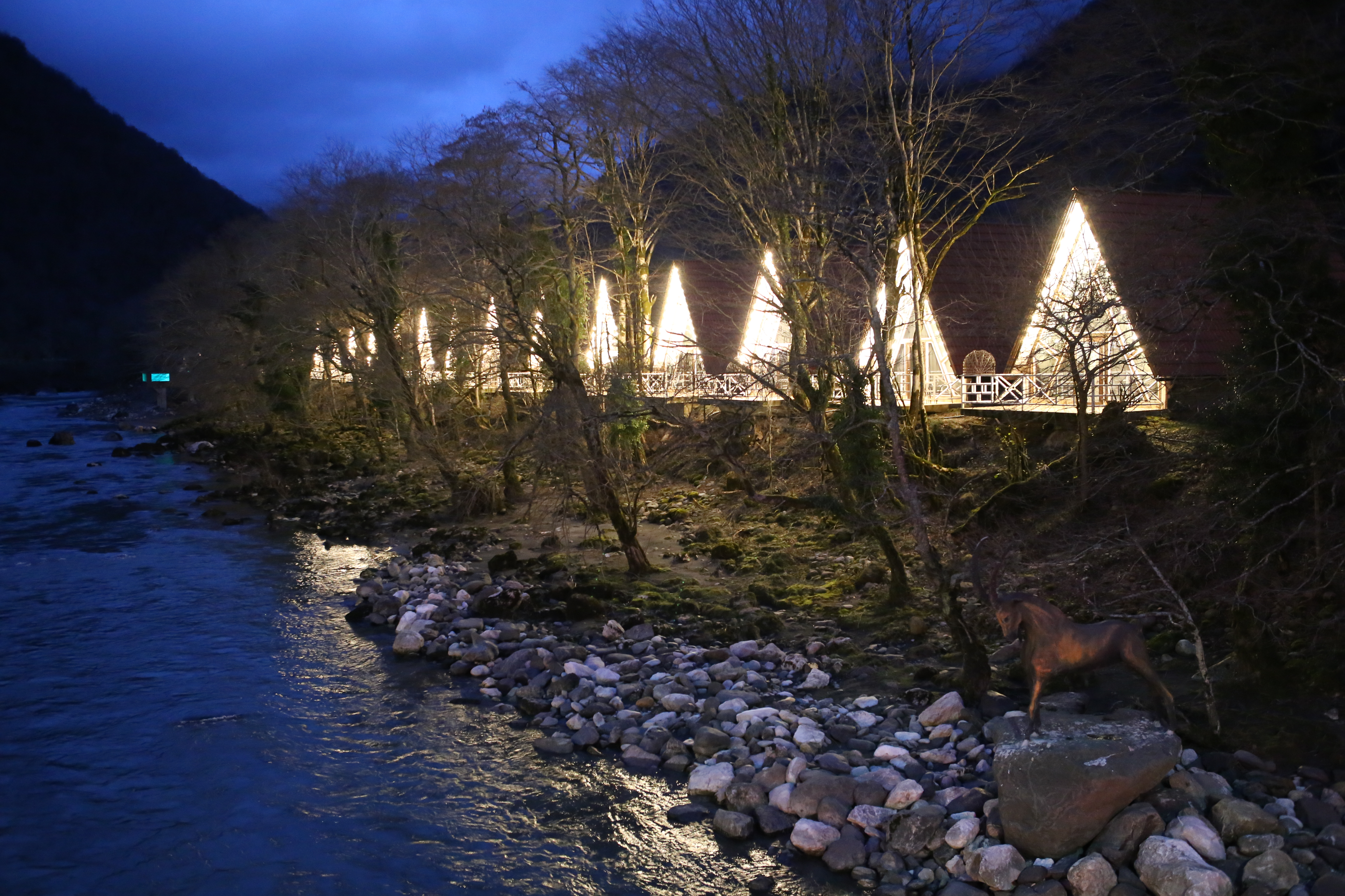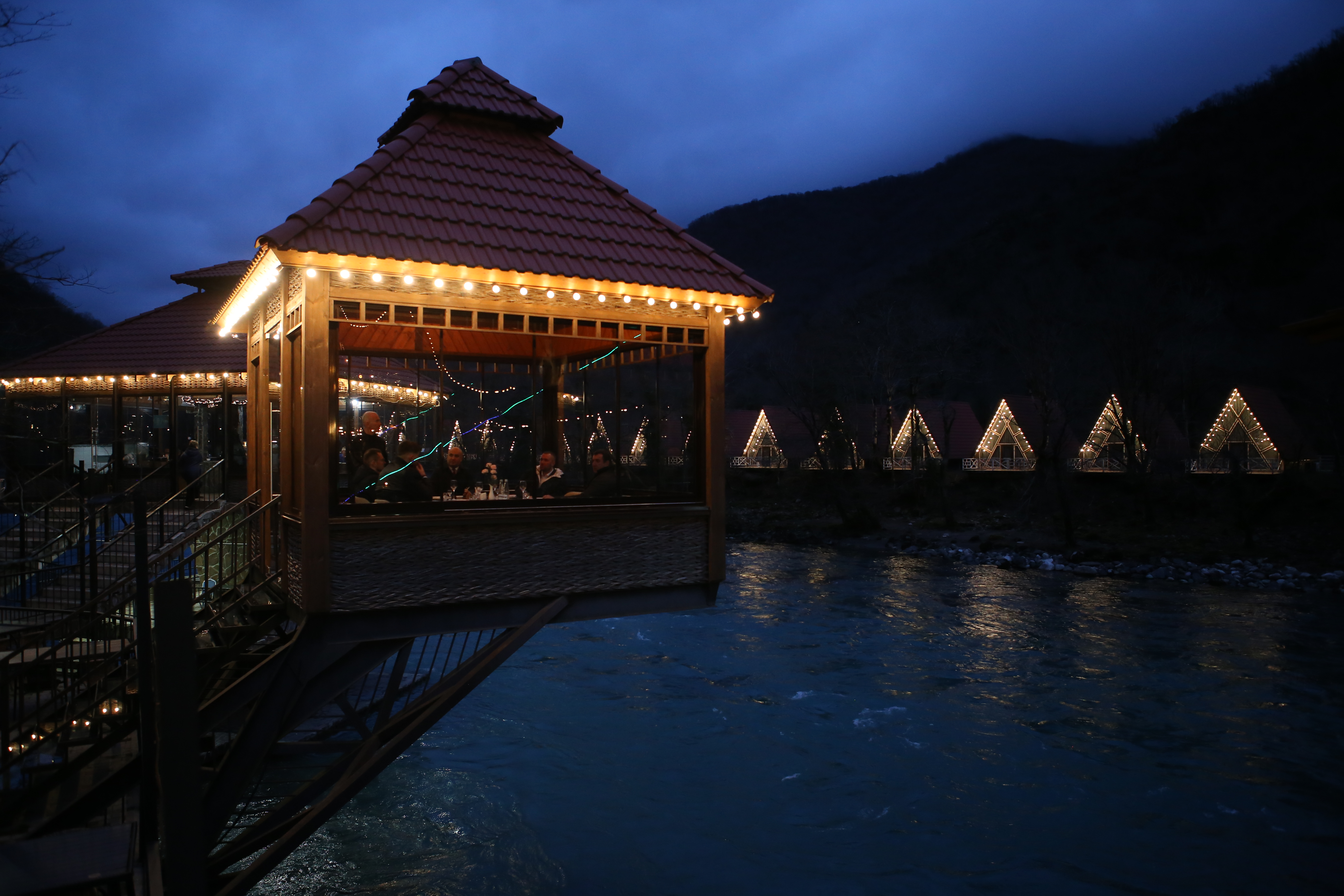 «Chalet Bridge» - пример реализации проектов по созданию глэмпинг-отелей. Для отдыхающих построены 19 домиков, имеются четыре бассейна, спа-зона, ресторан.