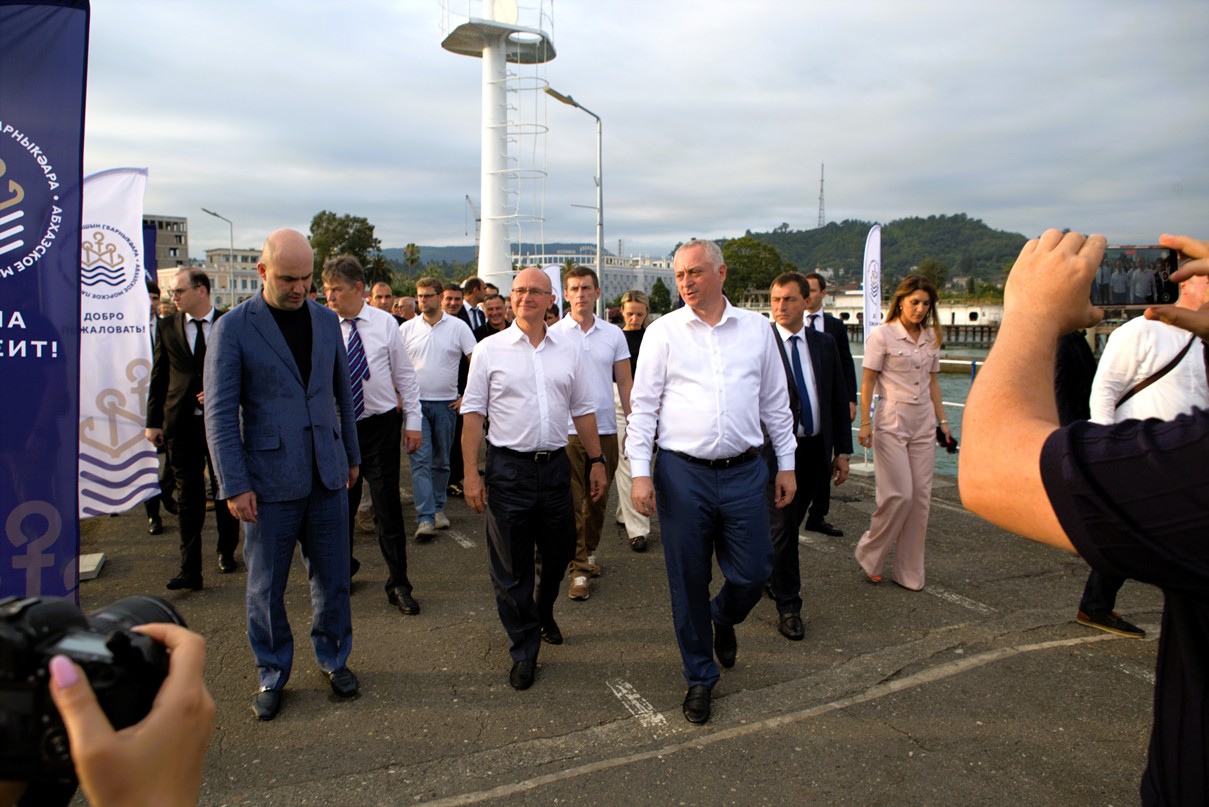 В сухумском порту первый рейс «Кометы» встретили президент Бадра Гунба, первый заместитель руководителя Администрации президента России Сергей Кириенко, вице-президент Беслан Бигвава, спикер Парламента Лаша Ашуба, посол Российской Федерации в Абхазии Михаил Шургалин, руководитель Администрации президента Абхазии Беслан Эшба, члены Правительства, общественность.