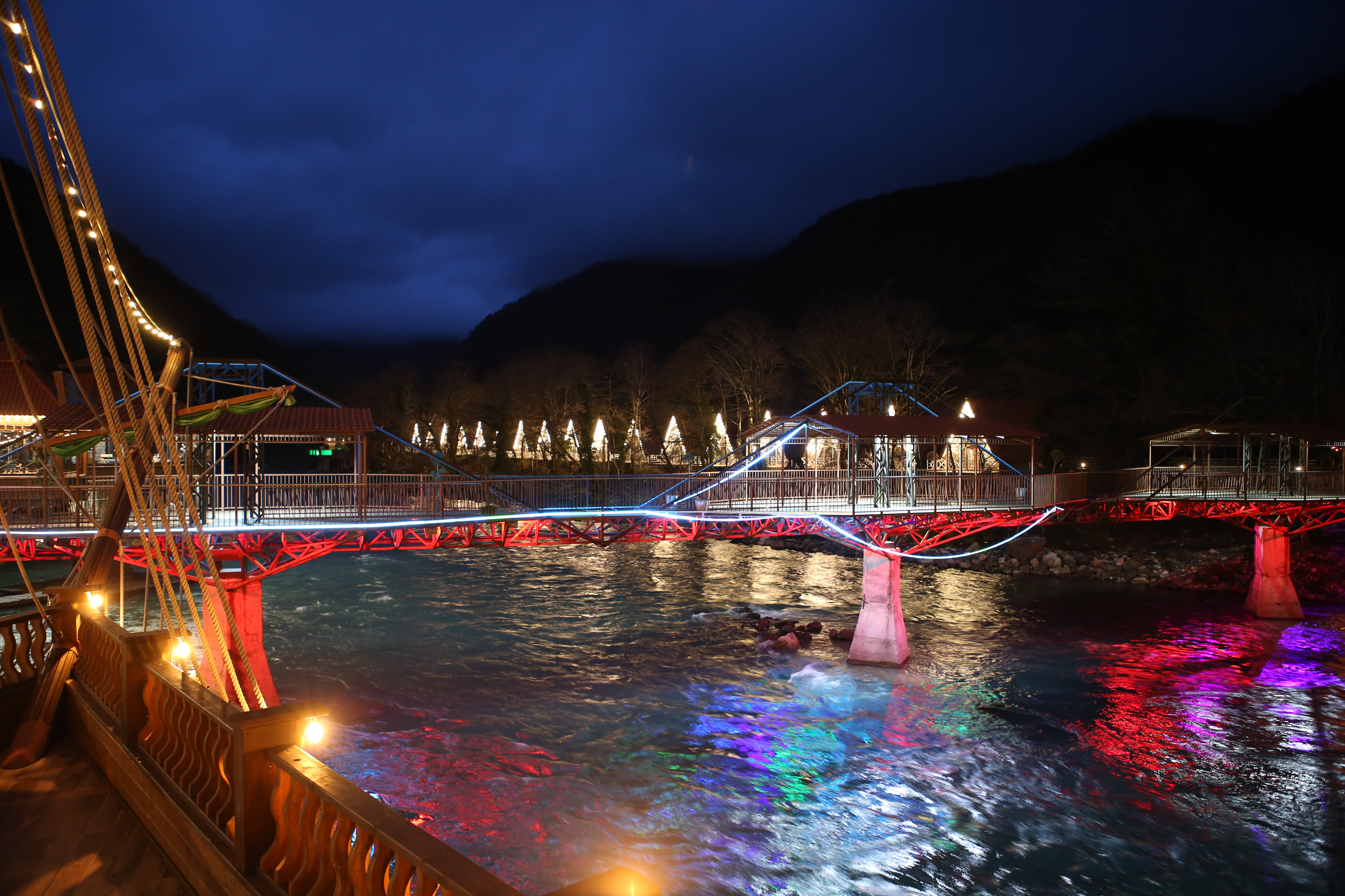 «Chalet Bridge» - пример реализации проектов по созданию глэмпинг-отелей. Для отдыхающих построены 19 домиков, имеются четыре бассейна, спа-зона, ресторан.