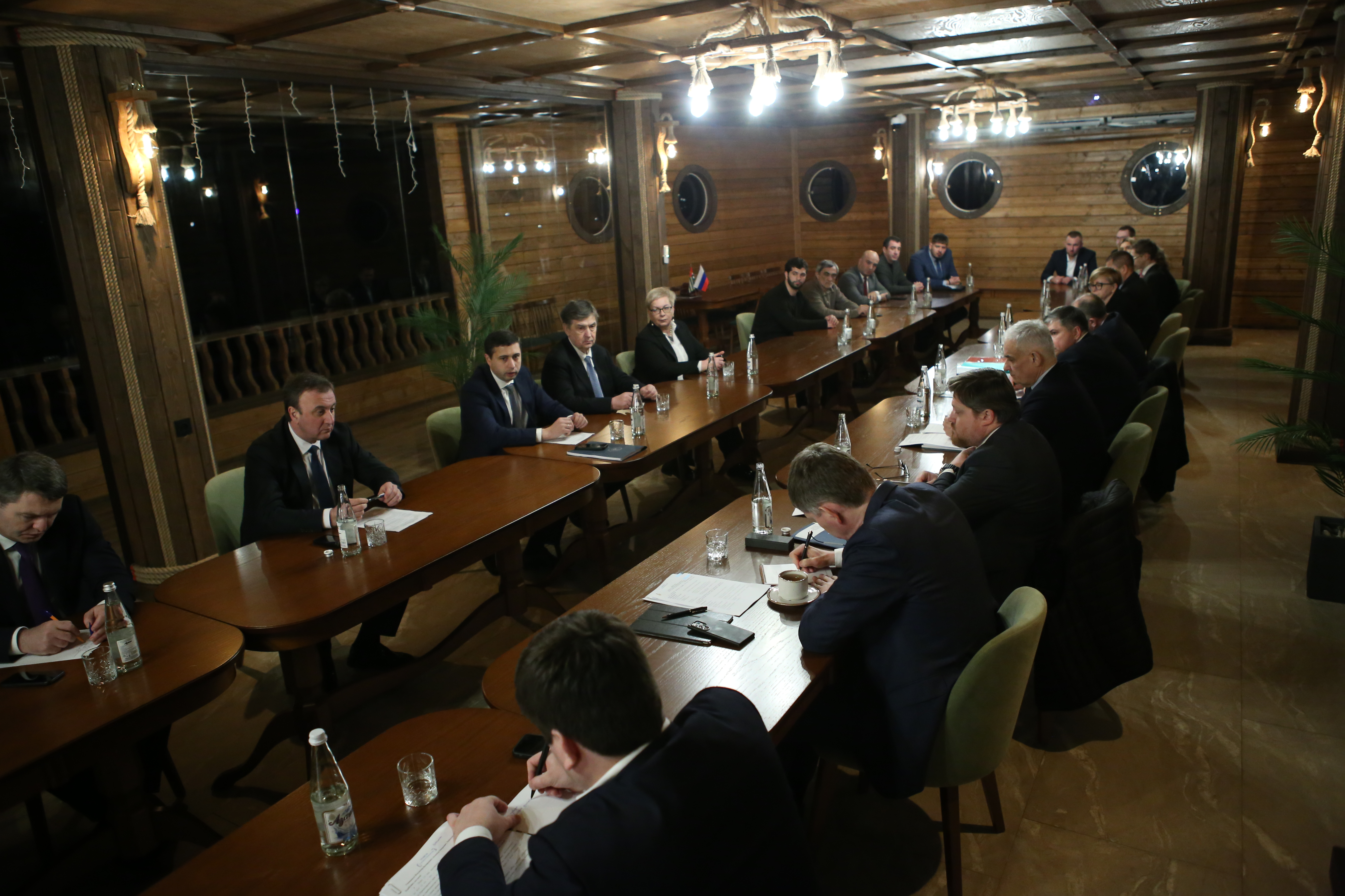 На территории глэмпинга состоялась рабочая встреча по вопросам развития туристической отрасли Абхазии, в числе которых меры поддержки глэмпинга, увеличение туристического потока через авиасообщение, увеличение количества бортов, субсидии перевозчикам, реализация туристических продуктов с использованием авиасообщения.